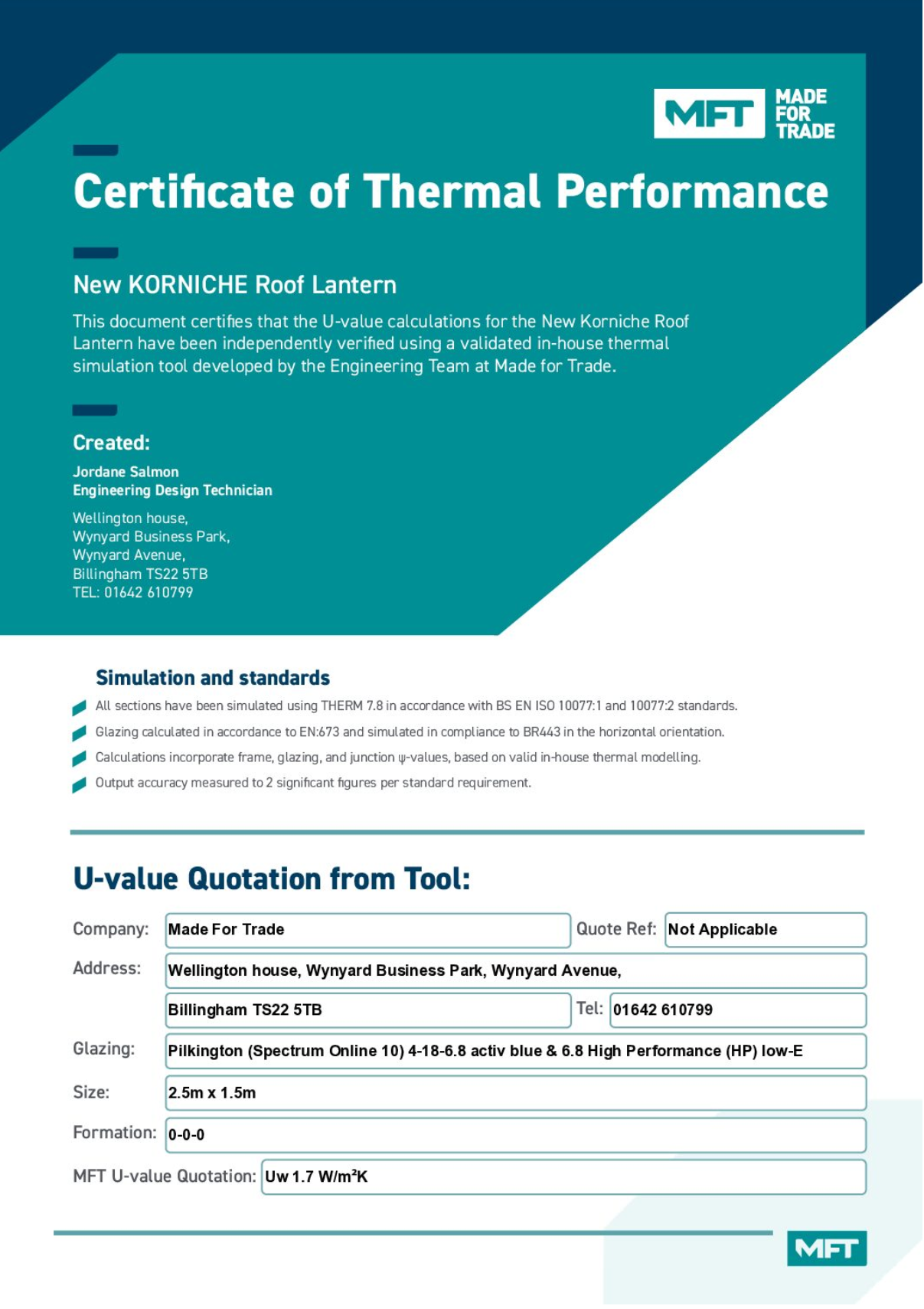 U-Value – Certificate Of Thermal Performance – FlatLite- TG